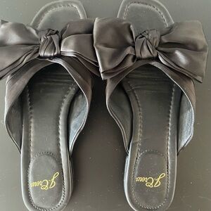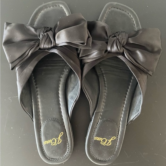 JCrew Abbie black slip on sandal big satin bow size 7 very feminine