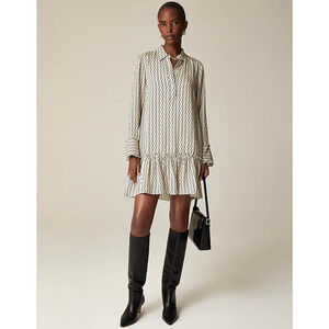 J.Crew Amelia Popover Shirtdress Vintage Links Prints Long Sleeve Large NWT.