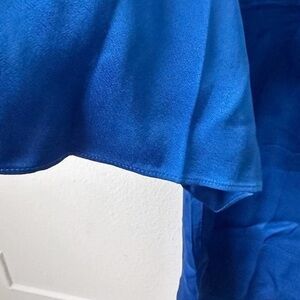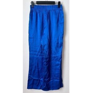Royal blue. Elastic waistband. Has pockets. Wide leg.