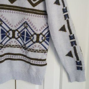 Excellent used condition Aztec Print Crew Neck Light Gray Sweater. Pictures do not capture the perfect combination of colors: blue, purple, and grey.