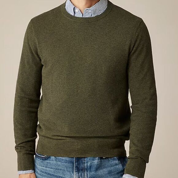 J. Crew BM043 Green Cotton Piqué-stitch Crewneck Sweater size med NWT