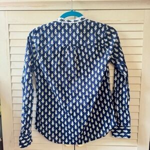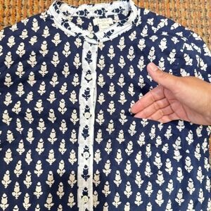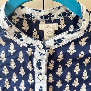 J.Crew Band Collar Block Print Blouse – Navy Floral, Size XXS