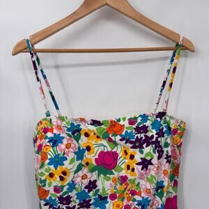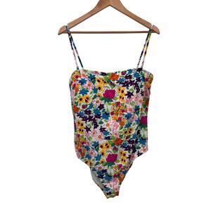 J.Crew Bandeau One-Piece Swim Suit Vibrant Garden Piqué Womens Plus 16 White NEW