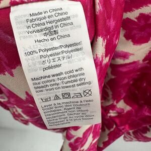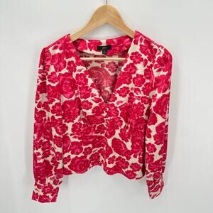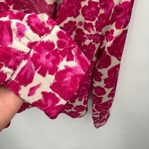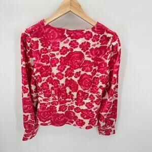 J.Crew Barbie Pink Floral Print Deep V-neck Faux Button Front Fitted Blouse // 2