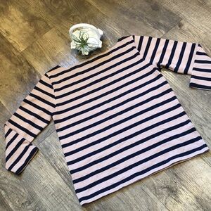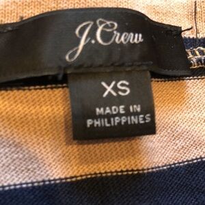 J. Crew basic cotton knitted top. Tan and navy. New without tags never worn. No smells or snags. Great with pants or skirt. Size XS. 18” P2P. Length 20”. Sleeves 18”.