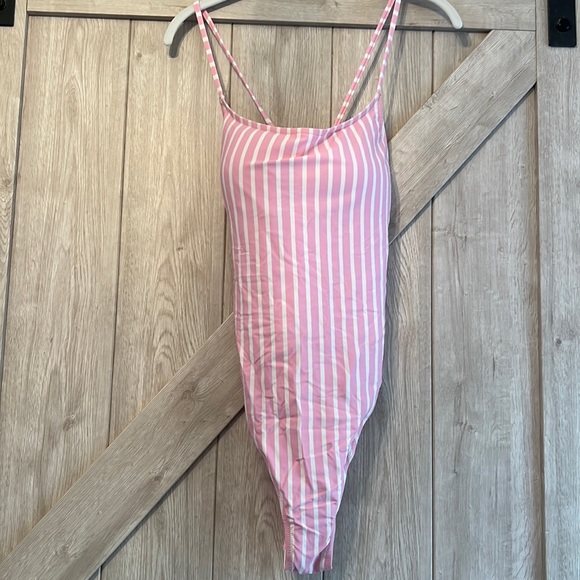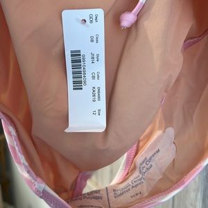 NWT, never worn. Size 12. Beautiful one piece, back with cris cross strings and ties at bottom. Bust has support pads. Hygienic liner in place.