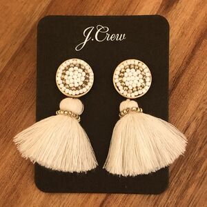 J.Crew | Beaded Cream Tassel Earrings | 2” Length