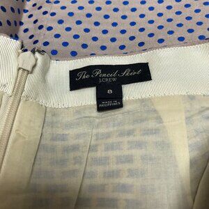 J.Crew Beige & Blue Polka Dot The Pencil Skirt Womens Cotton Blend Size 8