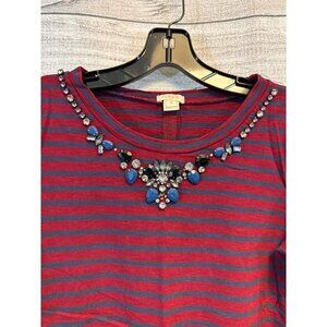 J.Crew Bejeweled Striped Red & Navy 3/4 Sleeve Top Size S