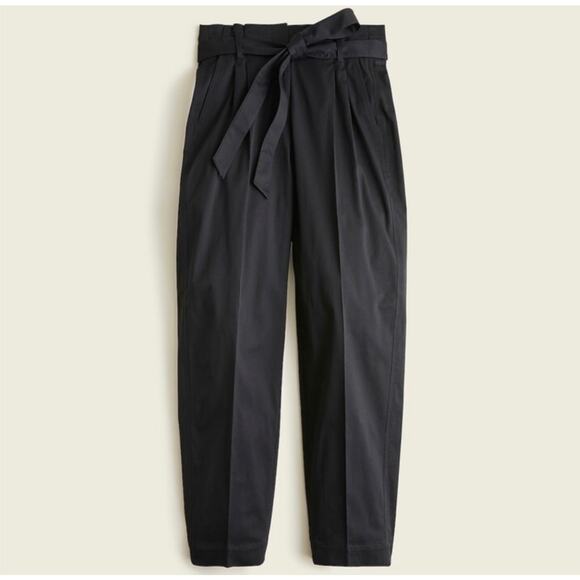 J.Crew Black Cotton Poplin Tapered Paper-bag High Waist Crop Ankle Pants Size 4