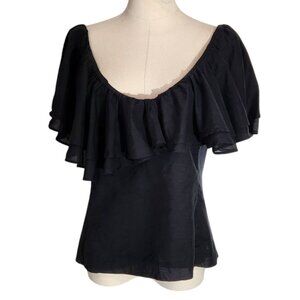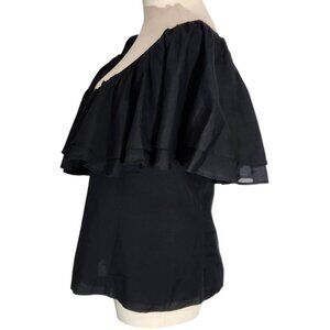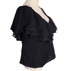 J.Crew Black Double Ruffle Cotton Voile V Neck Blouse New With Tag Womens Size 4