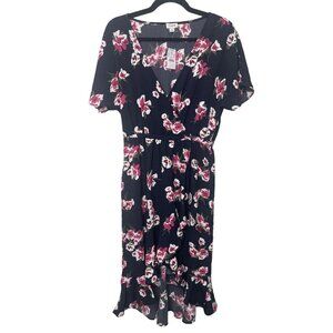 J.Crew Black Floral Print Faux Wrap High-Low Ruffle Hem Dress Size XS NWT