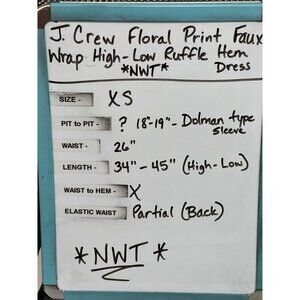 Enjoy the elegance of a J.Crew floral dress, featuring a flattering high-low hem and a wrap design that enhances your silhouette.