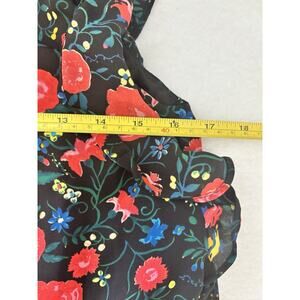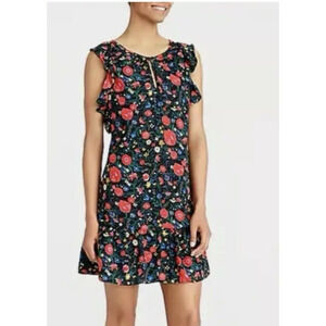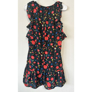 J.Crew Black Floral Sleeveless Dress XS Ruffle Trim Keyhole Neckline