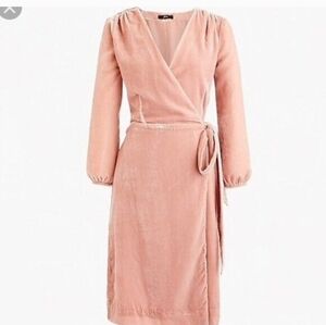 J.Crew Black Label Crushed Velvet Wrap Dress | 12 Petite | Baby Pink Blush 12P