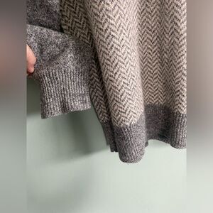 J.Crew Black Label Mens Lambswool Gray Chevron Pullover Knit Sweater Size Small