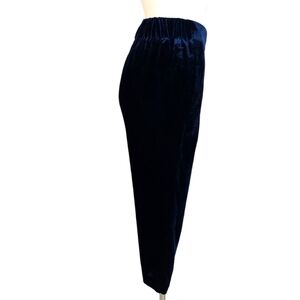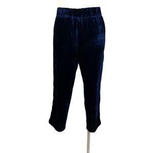 J.Crew Black Label Women's Blue Velour Pants 6 Petites. No stretch. Ankle Pant. Navy Velvet Trouser with lining. Elastic waist waistband. 2 front pockets. Boyfriend silhouette. 30 inch waist, 23 inch inseam, 9 inch rise