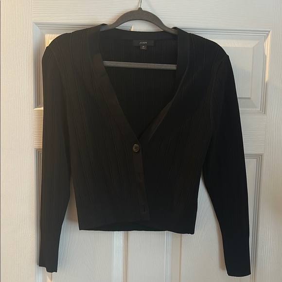 J.Crew black stretchy cropped cardigan. Size medium. Never worn excellent condition. Stylish black ribbed cardigan with button closure. Perfect for layering.