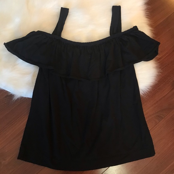 JCrew Black Ruffle Cold Shoulder Top