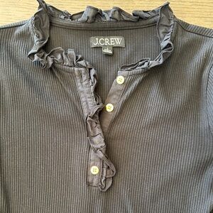 J.Crew Black Ruffled Ribbed Top