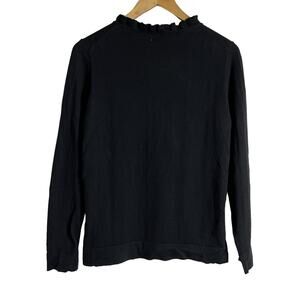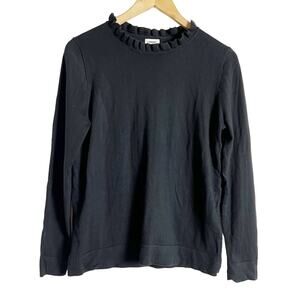 J.Crew Black Ruffleneck Long Sleeve Crewneck Pullover Sweater Size L