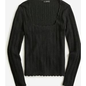 J.Crew Black Scalloped 100% merino wool pointelle sweater NWOT SMALL