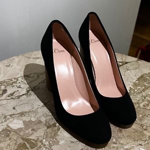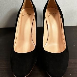 *J.Crew Black Suede Pumps with Chunky Wood Heels