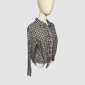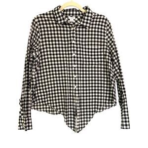 J.Crew Black White Gingham Button Down Shirt Women’s XL 100% Cotton Tie Front