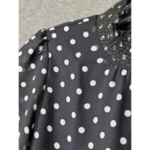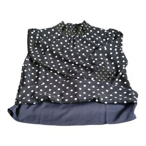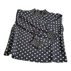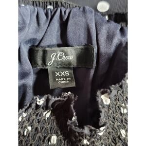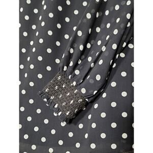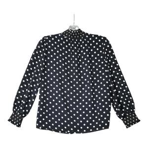 J.Crew Black White Polka Dot Ruched Neckline Long Sleeve Blouse Top Size XXS