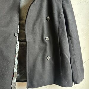 J.Crew Black Wool Blend Peacoat Jacket Classic Tailored Minimal Chic Prep Sz L