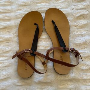 J. Crew Black and Brown Leather Thong Sandals