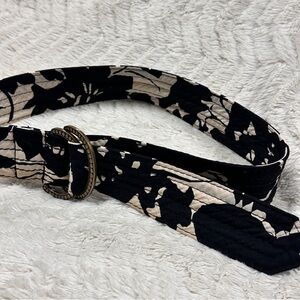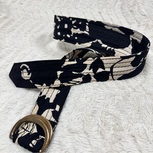 J.Crew Black and Cream Patterned Cotton Belt, Metal Buckle, sz S/M EUC