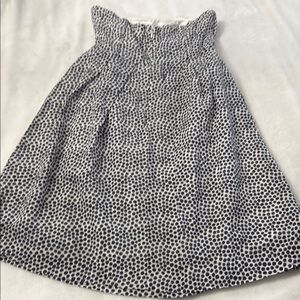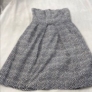 Chic strapless dress with a black and white polka dot pattern. Perfect for casual outings or summer events.
