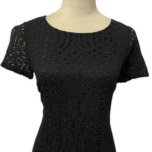 J. Crew Black Cocktail Dress w/Eyelet Designs Sheer Short Sleeves (Size; 00)