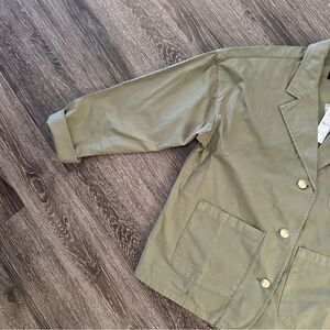 This easy style mixes the polish of a blazer with the comfort of an oversized jacket. It's made with our customer-favorite chino fabric and features gold-crest buttons down the front. By buying cotton products from J.Crew, you're supporting our investment in Better Cotton's mission to help cotton communities survive and thrive while protecting and restoring the environment. This product is sourced through a system of mass balance and therefore may not contain Better Cotton.