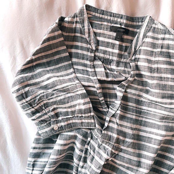 JCrew semi-sheer women’s blouse, v-neck tunic Cute baby-doll style 100% cotton