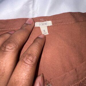 This J.Crew rust brown blouse is a chic and versatile addition to any wardrobe. Designed with delicate lace detailing on the front, it adds an elegant and feminine touch to a classic long-sleeve style. The fabric ensures all-day comfort, making it perfect for layering or wearing solo. Its warm rust brown color complements a variety of outfits, making it a great seasonal staple.