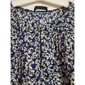 J.Crew Blouse Sleeveless Ruffle V-Neck Blue Floral Pleated Front SEE MEASUREMENTS
