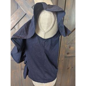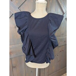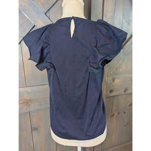 J. Crew Blouse Top Women's Small Navy Cotton Flutter Ruffle Sleeve Keyhole Back