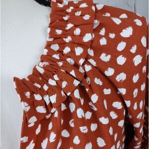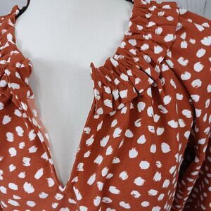 J. Crew Blouse Pleated V-neck in Brick Cognac with Abstract Print