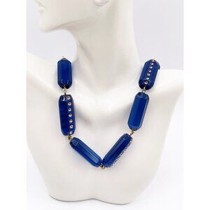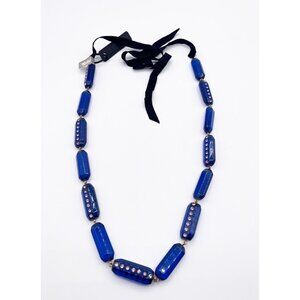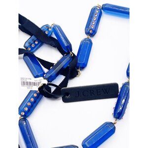 J.Crew Blue Acrylic Bead Ribbon Necklace Rhinestones Adjustable Tie Closure NWT