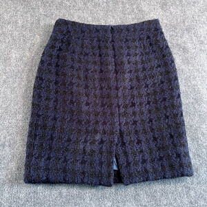 J.Crew Blue & Black Metallic Wool Pencil Skirt Size 6 Lined Work Holiday Sparkle