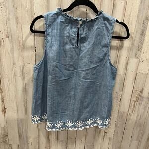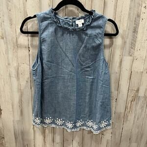 JCrew Blue Chambray High-neck Swing Top Embroidered For Women Size Medium