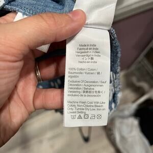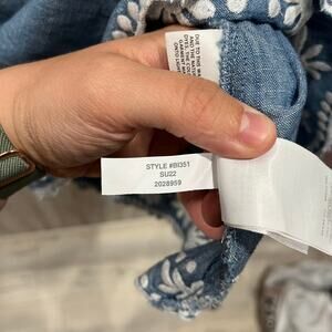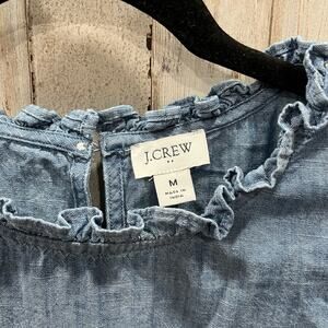 This J.Crew chambray swing top is a stylish and comfortable. The high-neck design and delicate embroidery add a touch of elegance.