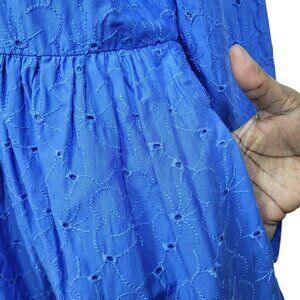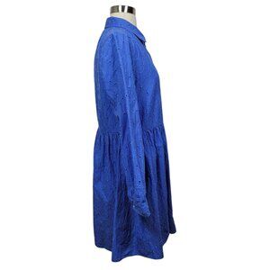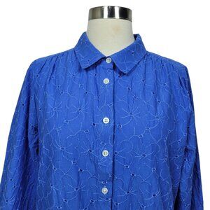 J.Crew Blue Eyelet Button Front Long Sleeve Mini Shirt Dress Size 10 Pockets