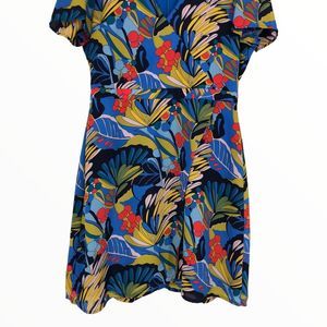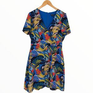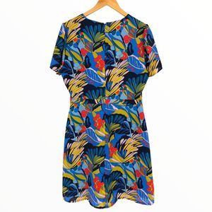 J. Crew Blue Floral Tropical Paradise Floral Short Sleeve Faux Wrap Dress sz 10