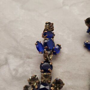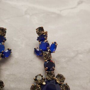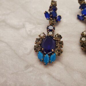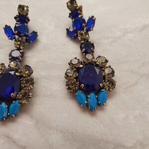💖 J.Crew Blue Grey Rhinestones Crystals Cluster Statement Drop Dangle Earrings