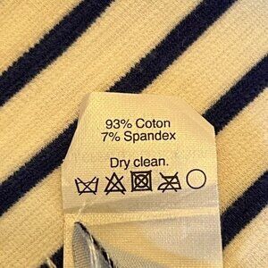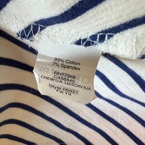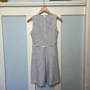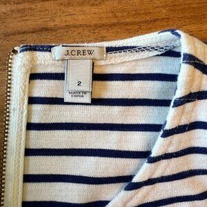 This J.Crew A-line dress offers a polished look with its classic blue and white stripes. The cotton-spandex blend ensures comfort and flexibility, while the back zipper adds a refined touch. Suitable for professional settings or casual outings, this dress embodies timeless style and versatility.