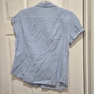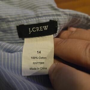 J.Crew Blue White Striped Pintuck Pleated Button Shirt Size 14 Short Sleeve
