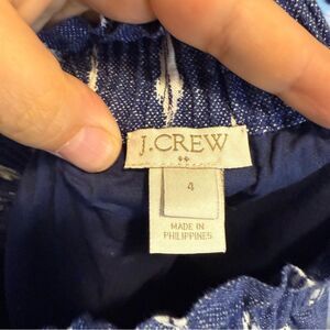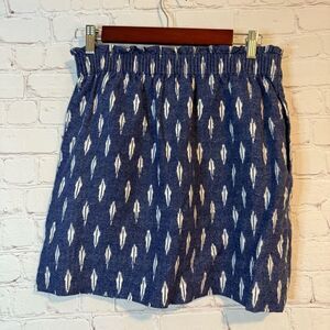 This J. Crew skirt features a striking blue and white geometric ikat pattern, perfect for casual or resort wear. The mini length and A-line silhouette offer a chic and breezy style, ideal for warm weather outings. Crafted from lightweight fabric, it ensures comfort and ease of movement.